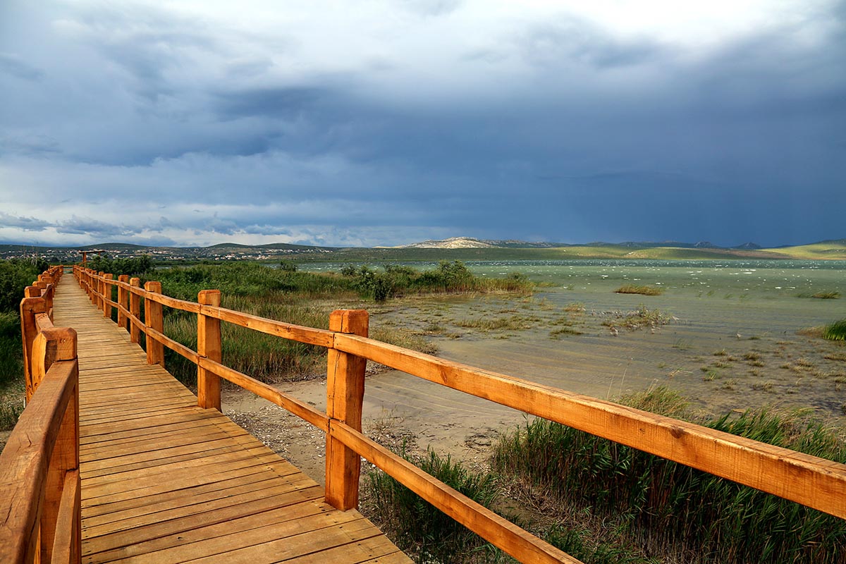 The lake is 30,02km², and there is 57 km² inside Park limits. The most important chracteristic is its special Ornithological reserve which has been included in the list of Important Bird Areas in Europe.